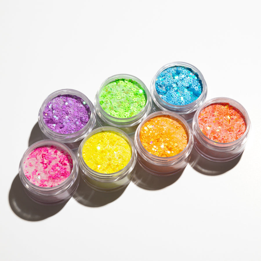 The Flower Power Collection. 7 enticing varieties of glitter acrylics that provide you the utmost colorful looks.